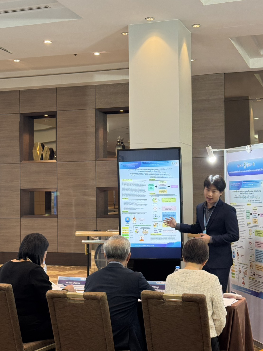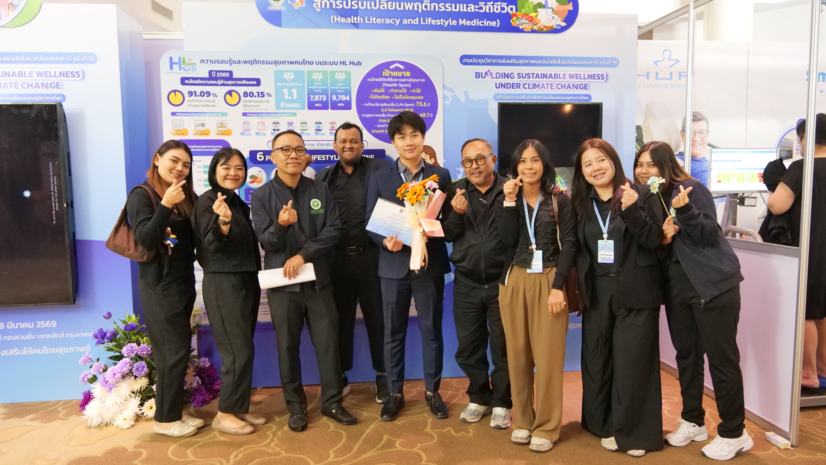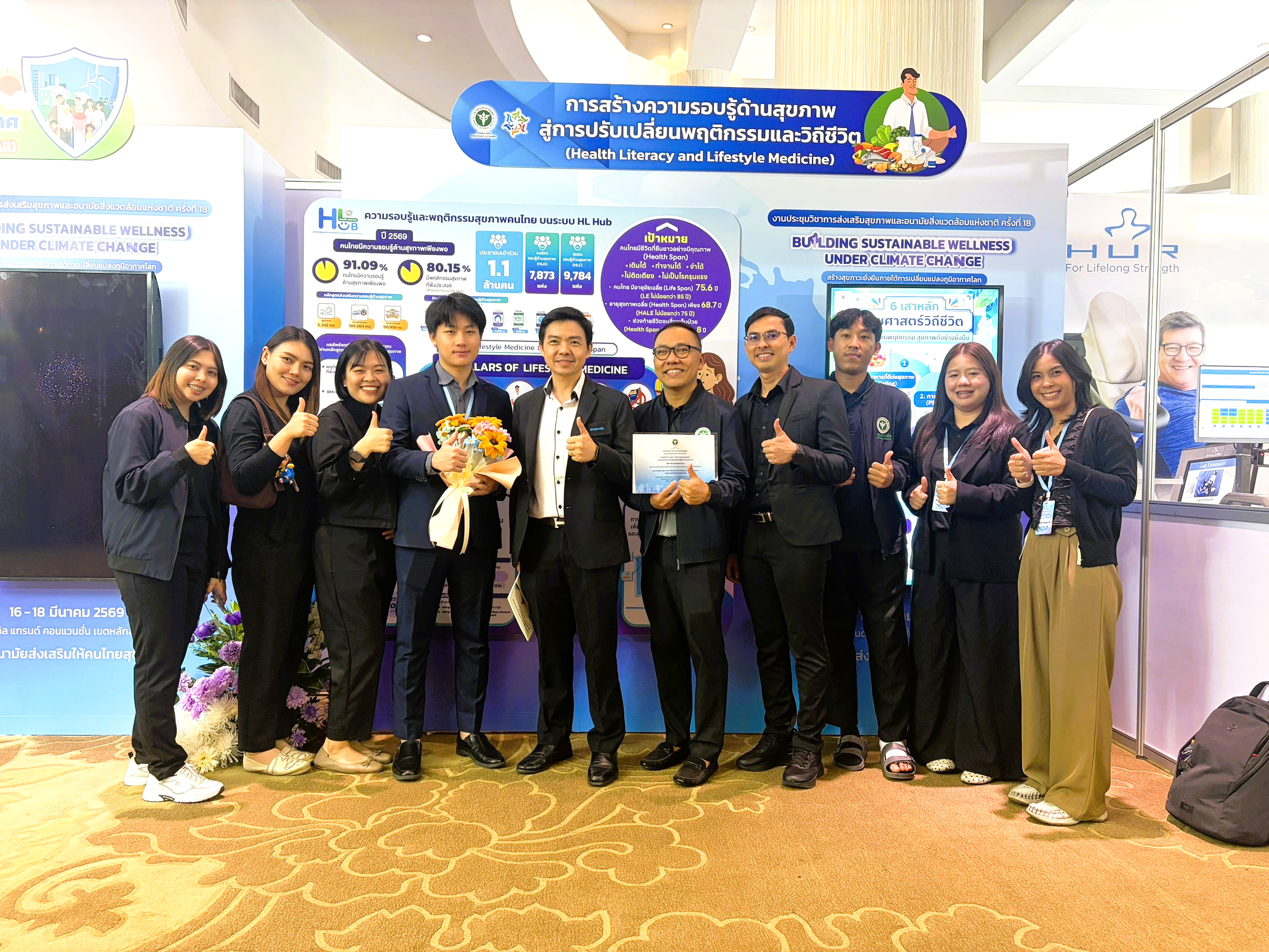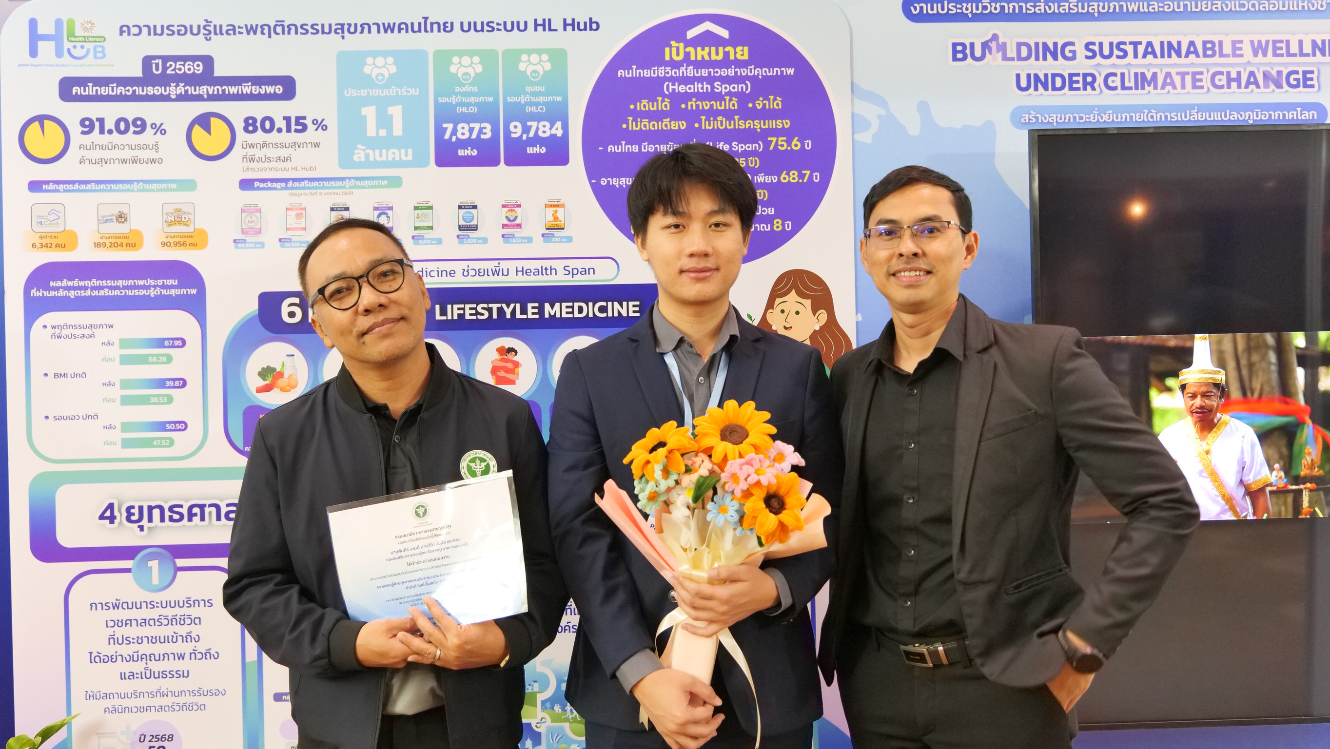 วันนี้ (17 มีนาคม 2569) นายแพทย์อัครวัฒน์ เพียวพงภควัต ผู้อำนวยการกองส่งเสริมความรอบรู้และสื่อสารสุขภาพ กรมอนามัย แสดงความยินดีกับ นายคัมภีร์ งานดี นายมณฑล หวานวาจา และนายวิถี มโนมัย ในการนำเสนอผลงานวิชาการ หัวข้อเรื่อง ความรอบรู้ด้านสุขภาพของประชาชน ผ่าน Campaign : ENDU Anamai กำลังดี กินดี ยิ้มสดใส เข้าใจเพศวิถี ใน งานประชุมวิชาการส่งเสริมสุขภาพและอนามัยสิ่งแวดล้อมแห่งชาติ ครั้งที่ 18 Building Sustainable Wellness Under Climate Change "สร้างสุขภาวะที่ยั่งยืนภายใต้การเปลี่ยนแปลงภูมิอากาศโลก" ณ โรงแรมมิราเคิล แกรนด์ คอนเวนชัน กรุงเทพมหานคร